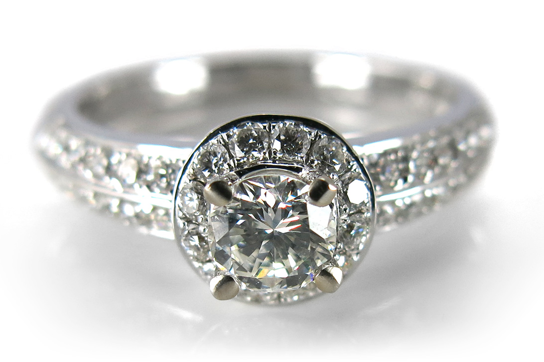 Umrahmt wird der zentrale Stein von 36 weiteren Brillanten, die zusammen etwa 0,47 Carat wiegen. Mit ihrer exzellenten Farbe Top Wesselton und der Reinheit VS2 bilden sie ein harmonisches Funkeln, das den zentralen Diamanten perfekt in Szene setzt. Das kunstvolle Arrangement dieser Edelsteine verleiht dem Ring eine außergewöhnliche Brillanz und betont seine hohe Wertigkeit.