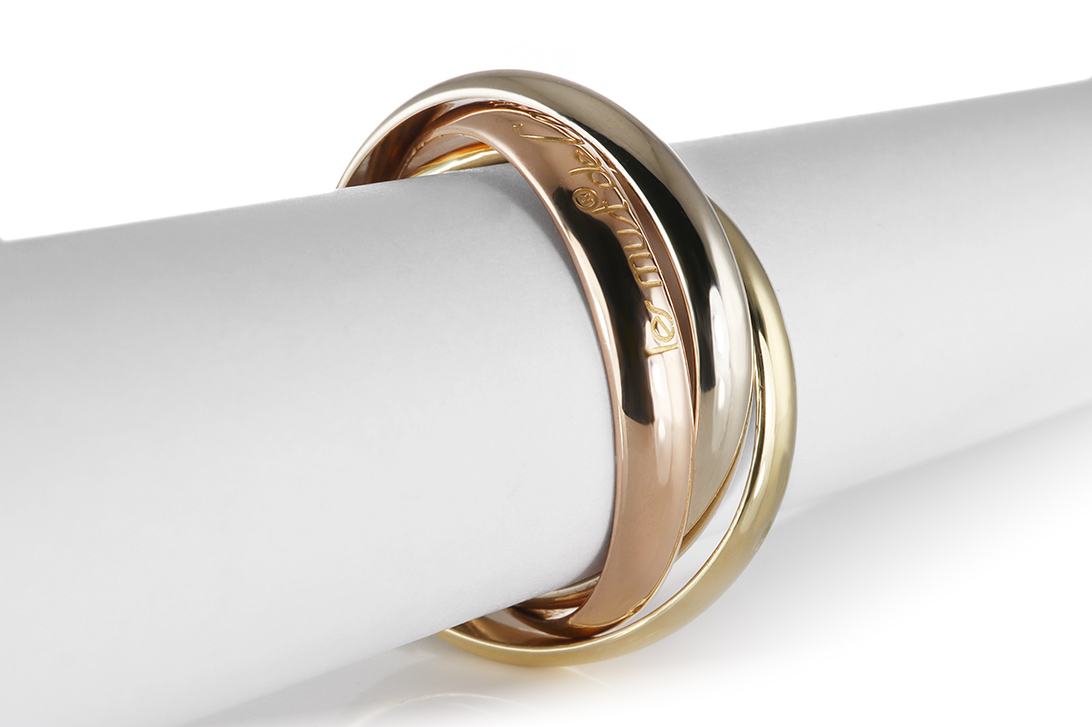 Dieser Ring besteht aus drei harmonisch ineinander verschlungenen Ringschienen und verkörpert die unverwechselbare Eleganz der ikonischen Trinity-Kollektion von Cartier. Das Modell „Trinity les must de Cartier“ fasziniert durch seine charakteristische Dreifarbigkeit und seine zeitlose Gestaltung, die seit Jahrzehnten zu den bedeutendsten Designs des Hauses Cartier zählt.