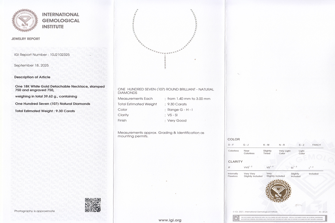 Collier mit Anhänger 107 Brillanten ca. 9,30 ct 750 Weißgold IGI [BRORS 20450]