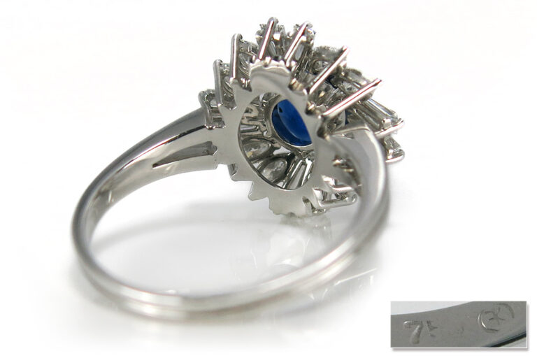 Dieser elegante Damenring aus 750er Weißgold vereint edle Materialien mit außergewöhnlicher Detailverliebtheit. Im Zentrum steht ein intensiv blauer Saphir von ca. 1,65 Karat, der mit seinen Maßen von ca. 7,98 x 6,78 mm eine harmonische ovale Form aufweist. Die Kombination aus Sternschliff auf der Vorderseite und Treppenschliff auf der Rückseite verleiht dem Edelstein eine faszinierende Tiefenwirkung und lebendige Lichtreflexe.