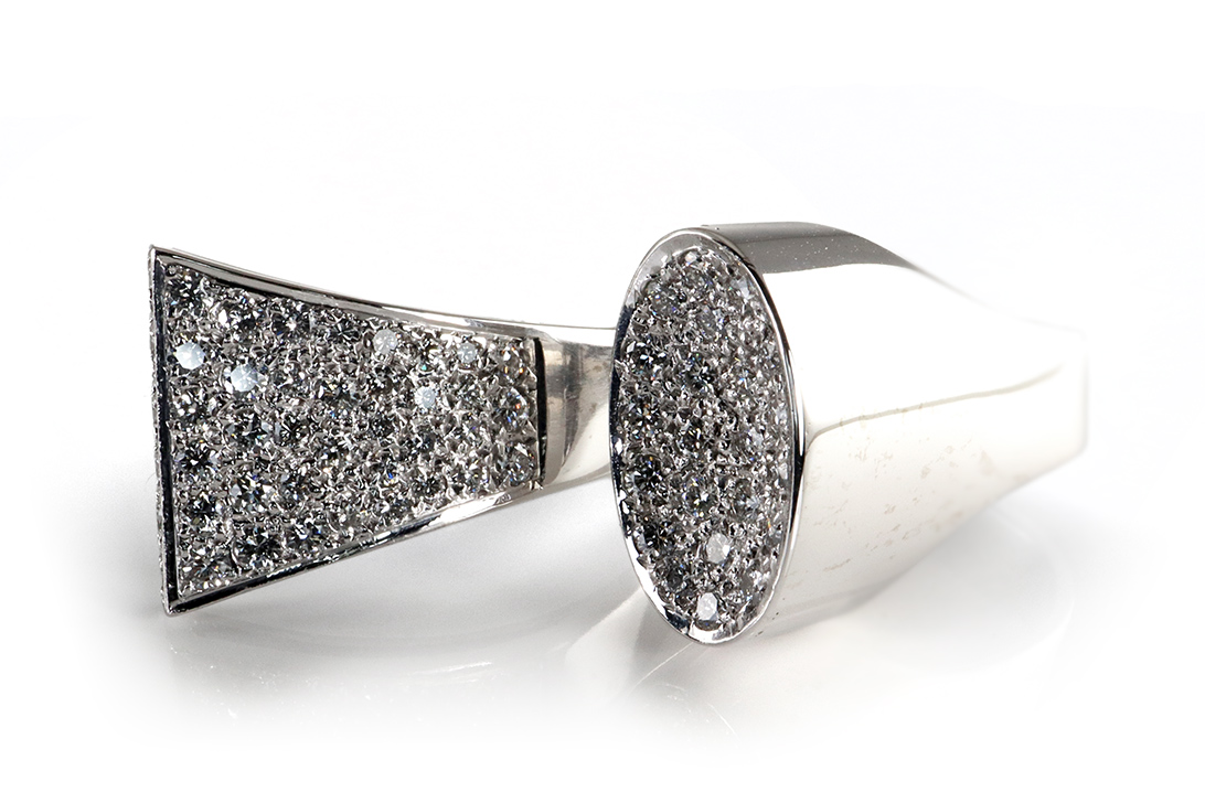 Insgesamt 57 funkelnde Brillanten mit einer Gesamtkaratur von ca. 1,1 ct sorgen für ein beeindruckendes Lichtspiel. Die Diamanten sind in der begehrten Farbe Top Wesselton und mit der exzellenten Reinheit VVS gefasst, was ihre außergewöhnliche Strahlkraft unterstreicht. Der großzügige Ringkopf mit einer Breite von ca. 17,0 mm verleiht dem Schmuckstück eine eindrucksvolle Präsenz, während die harmonische Linienführung für einen angenehmen Tragekomfort sorgt.