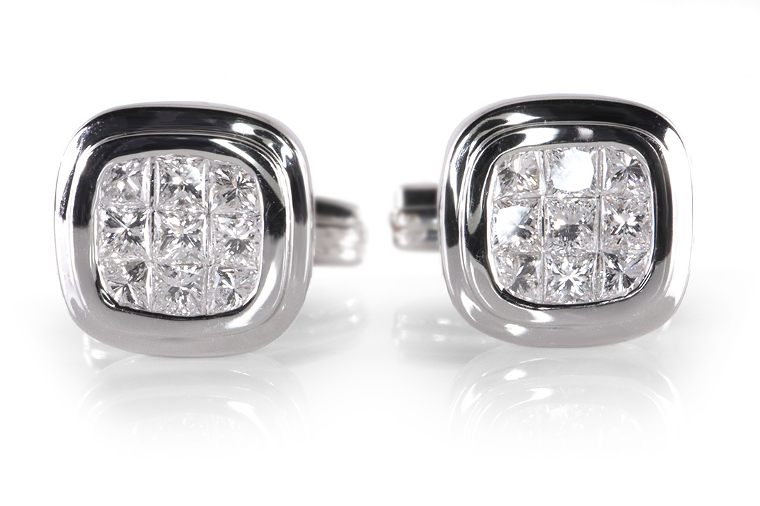 In kunstvoller Anordnung sind insgesamt 18 Diamanten gefasst, die zusammen eine beeindruckende Gesamtkaratur von rund 1,9 ct ergeben. Die Steine in der exzellenten Farbqualität E–F und der hohen Reinheit VVS–VS präsentieren sich im edlen Princess Cut, dessen quadratische Form ein modernes, markantes Funkeln erzeugt. Durch diesen Schliff entfalten die Diamanten ein intensives, gleichmäßiges Lichtspiel, das Eleganz und Präzision perfekt vereint.