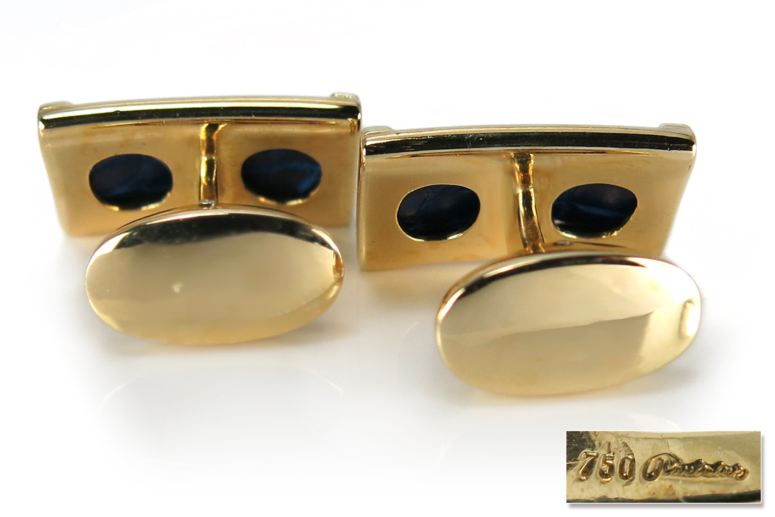 Dieser Manschettenknopf-Satz präsentiert sich als edles Accessoire, das klassische Eleganz mit feiner Goldschmiedekunst verbindet. Die Oberfläche ist harmonisch proportioniert gestaltet und zeigt eine klare, souveräne Formensprache, die den Charakter eines hochwertigen Herrenschmuckstücks stilvoll hervorhebt. Das warme Leuchten des 750/- Gelbgoldes verleiht den Manschettenknöpfen eine eindrucksvolle Präsenz und unterstreicht ihre gehobene Ausstrahlung, ohne dabei aufdringlich zu wirken.