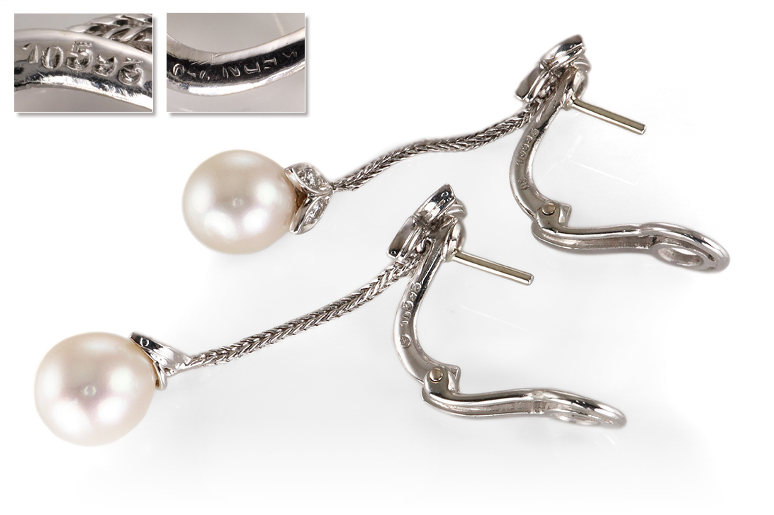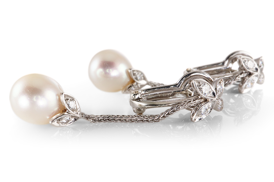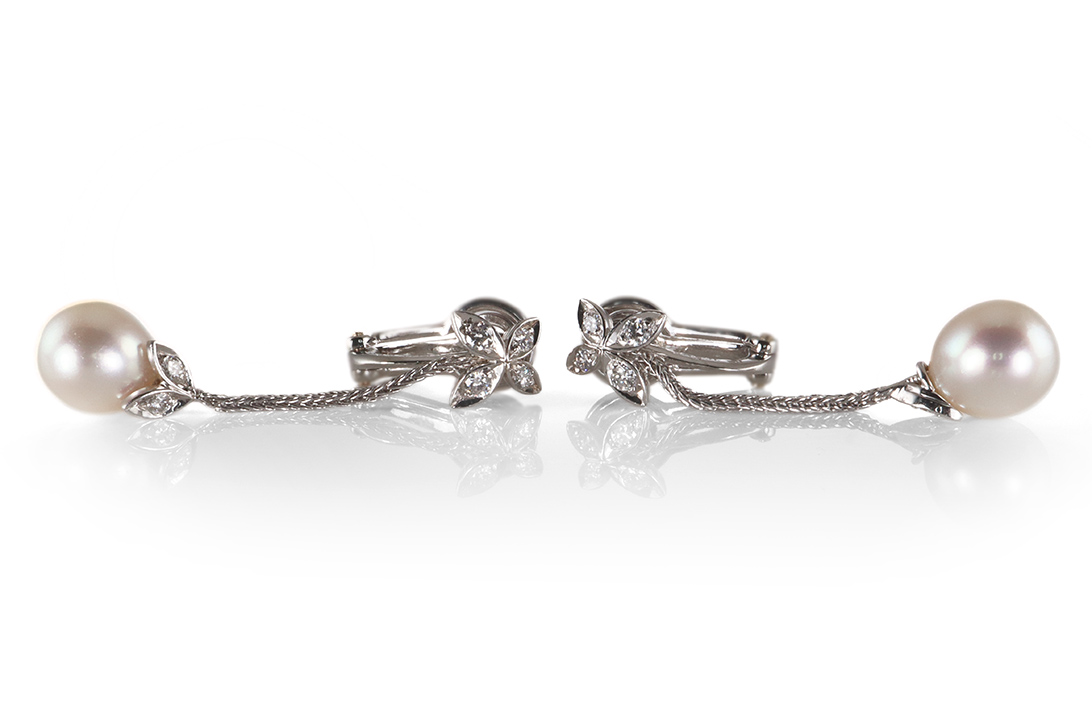 Umgeben werden die Perlen von insgesamt zwölf Brillanten mit einem Gesamtgewicht von etwa 0,24 Karat. Ihre herausragende Farbe in Top Wesselton und die Reinheit der Stufe VVS verleihen den Ohrsteckern ein faszinierendes Funkeln, das jede Bewegung mit einem edlen Lichtspiel begleitet. Der brillante Schliff betont das Feuer der Steine auf eindrucksvolle Weise und bildet einen stilvollen Kontrast zum sanften Schimmer der Perlen.