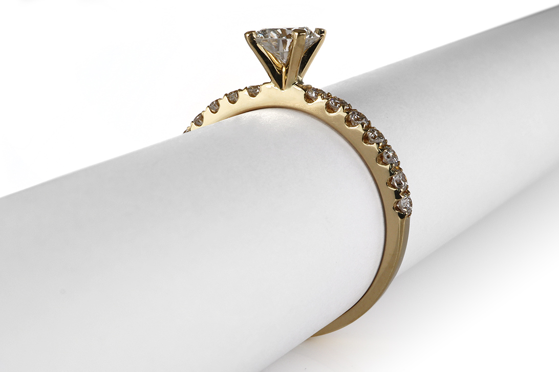 Der Ringkopf misst ca. 5,2 mm in der Breite und 6,2 mm in der Stärke und wirkt dadurch präsent, ohne die filigrane Anmutung des Schmuckstücks zu verlieren. Die nach hinten schmal zulaufende Ringschiene mit ca. 1,5 mm Breite und 1,0 mm Stärke sorgt für angenehmen Tragekomfort und eine elegante Linienführung.