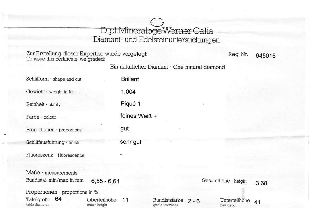 ![Ring 1 Brillant 1,004 ct F/P1 750 Gold Galia Gutachten Gr 63 [BRORS 20419]](https://brors.nrw/wp-content/uploads/2026/01/20419-02-768x511.jpg)