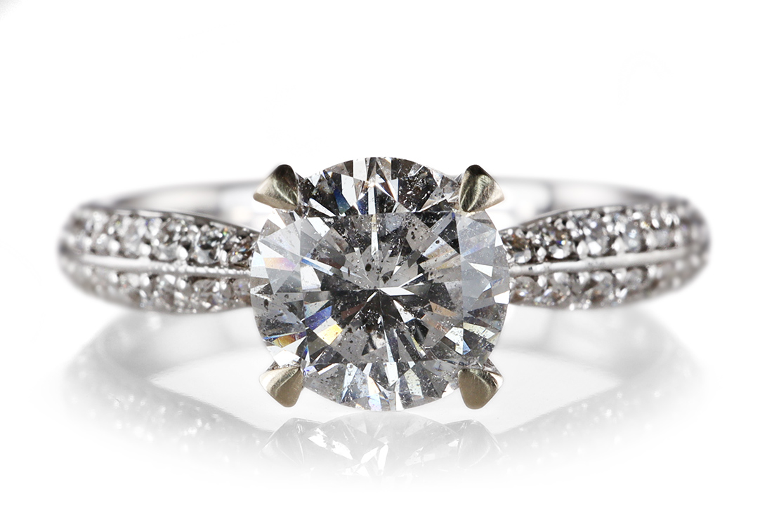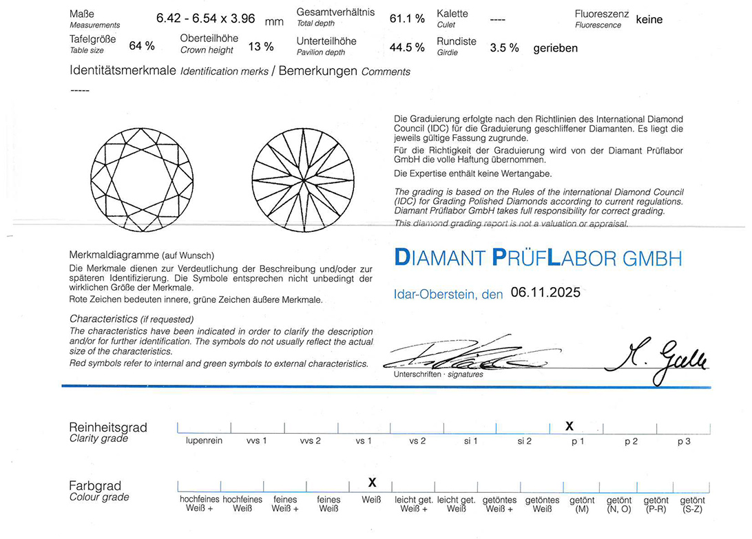 Ergänzt wird der Hauptdiamant von 32 seitlich gefassten Brillanten mit einem Gesamtgewicht von ca. 0,30 ct. Diese Diamanten in feinem Wesselton und sehr guter Reinheit (VS) verleihen dem Ring zusätzliche Brillanz und unterstreichen die luxuriöse Gesamtwirkung. Die sorgfältige Anordnung des Nebenbesatzes schafft ein stimmiges Gesamtbild und verleiht dem Ring Tiefe und Raffinesse.