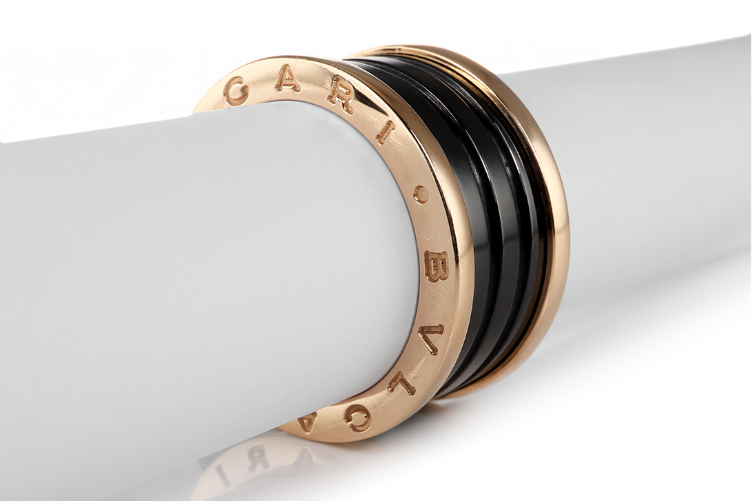 Dieser Ring vereint die markante Designsprache von Bvlgari mit moderner Eleganz und architektonischer Klarheit. Das Modell „B. Zero 1 4-Band“ ist inspiriert von der Form des Kolosseums und steht für zeitgenössischen Luxus mit unverwechselbarem Charakter. Gefertigt aus edlem 750/- Roségold, entfaltet das Schmuckstück eine warme, ausdrucksstarke Ausstrahlung, die durch die Integration schwarzer Keramik stilvoll ergänzt wird.