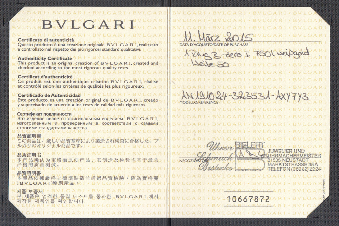 Dieser Ring beeindruckt durch sein markantes und zugleich zeitlos modernes Design aus dem Hause Bvlgari. Das Modell „B. Zero 1“ steht wie kaum ein anderes Schmuckstück für architektonische Klarheit und italienische Eleganz. Gefertigt aus hochwertigem 750/- Weißgold, überzeugt der Ring durch seine kraftvolle Präsenz und die charakteristische, spiralförmige Linienführung, die von der römischen Baukunst inspiriert ist.