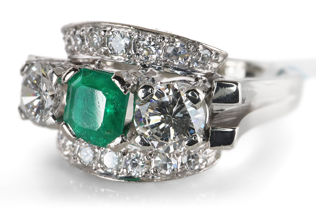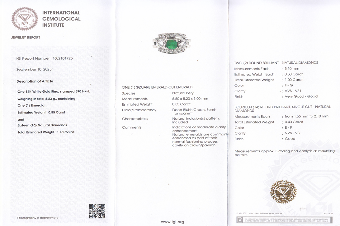 Ring Smaragd 0,55 ct + 16 Brillanten 1,40 ct E-F-G IGI Gutachten [BRORS 20451]