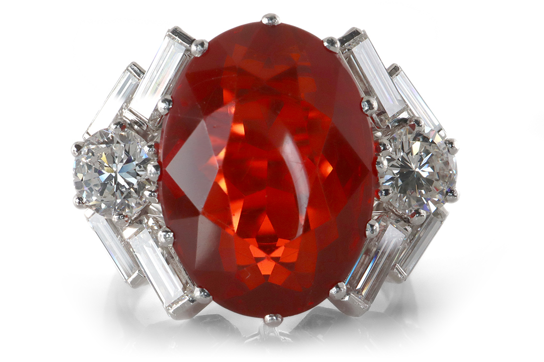 Dieser außergewöhnliche Damenring vereint edelste Materialien und meisterhafte Handwerkskunst zu einem unverwechselbaren Schmuckstück von beeindruckender Ausstrahlung. Im Zentrum steht ein prachtvoller Feueropal von ca. 5,70 Karat in intensiver Farbe Deep Reddish Orange, dessen lebendige Brillanz und faszinierendes Farbspiel das Auge sofort fesseln. Der Edelstein ist im eleganten oval mixed cut geschliffen, wodurch seine Tiefe und Leuchtkraft besonders betont werden.