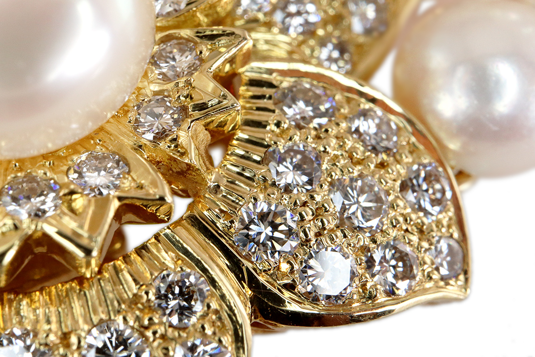 Der aufwendig gearbeitete Verschluss aus 750/- Gelbgold bildet das glanzvolle Zentrum des Designs. Er ist mit insgesamt 83 funkelnden Diamanten im Brillantschliff besetzt, die zusammen etwa 1,9 Karat wiegen. Mit ihrer außergewöhnlichen Qualität – Farbgrad E–F und Reinheit VVS bis VS2 – sorgen sie für ein beeindruckendes Strahlen, das die feine Struktur der Perlen perfekt ergänzt.