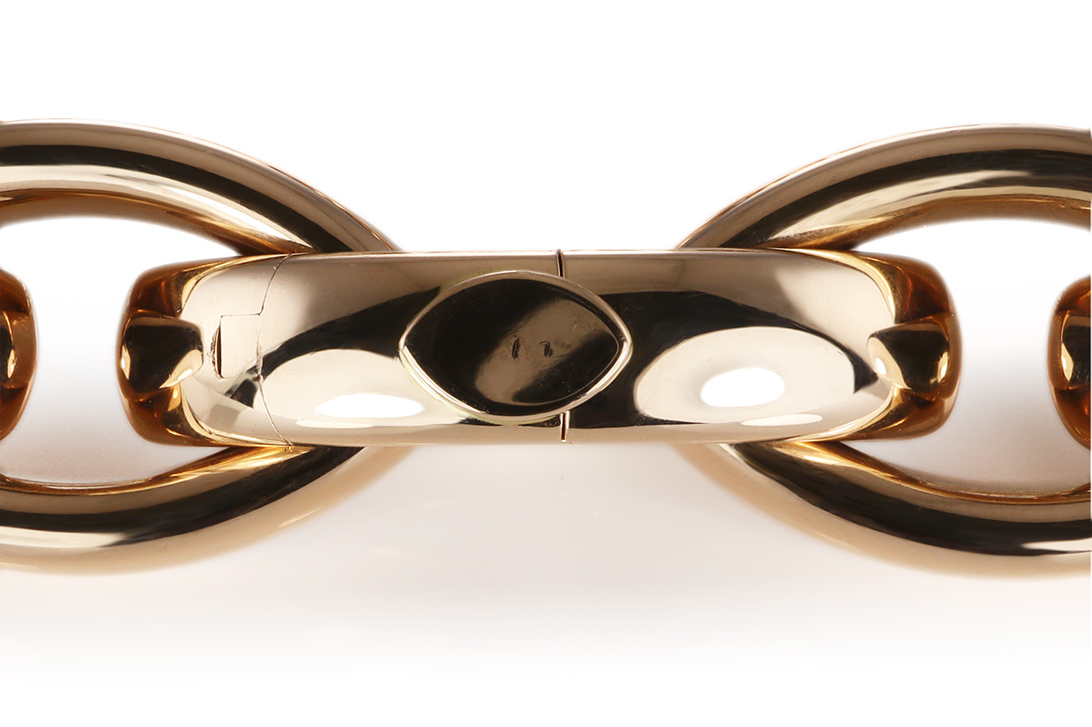 Die großzügig gestalteten Kettenglieder formen ein harmonisches Gesamtbild, das sowohl kraftvoll als auch stilvoll wirkt. Mit einer Breite von etwa 19,0 mm entfaltet das Collier eine beeindruckende Wirkung am Dekolleté und verleiht jedem Auftritt eine besondere Ausstrahlung. Gleichzeitig sorgt die sorgfältige Verarbeitung für eine angenehme Haptik und ein komfortables Tragegefühl.