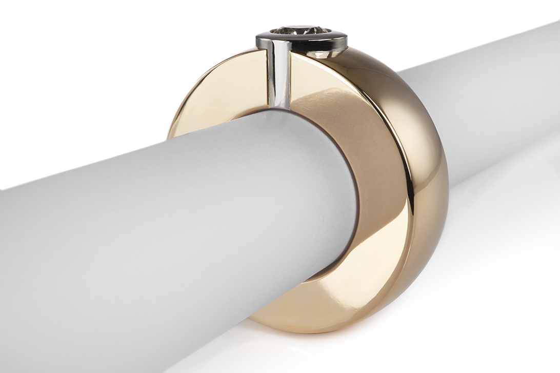 Im Mittelpunkt steht ein Diamant im klassischen Brillantschliff mit einem Gewicht von ca. 0,50 ct. In der Farbe Top Crystal (J) und der Reinheit VS1 überzeugt der Stein durch eine lebendige Brillanz und ein klares, strahlendes Erscheinungsbild. Die Kombination aus warm schimmerndem Gelbgold und kühlem Platin hebt die Leuchtkraft des Diamanten besonders hervor und schafft einen reizvollen Kontrast, der die Wertigkeit des Designs zusätzlich betont.