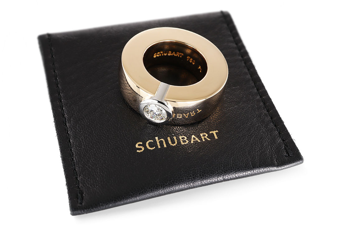 Mit einer Breite von ca. 9,5 mm und einer kraftvollen Ausarbeitung wirkt der Ring selbstbewusst und luxuriös, ohne auf Eleganz zu verzichten. Die sorgfältige Verarbeitung sowie die originale Punzierung „SCHUBART 750 PT“ zeugen von der hohen Qualität dieses Schmuckstücks. Die Ringgröße beträgt 55, eine Größenänderung ist nicht möglich. Ein GIA-Gutachten dokumentiert die Qualität des Diamanten.