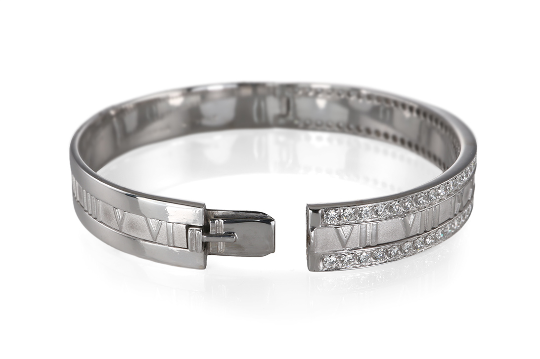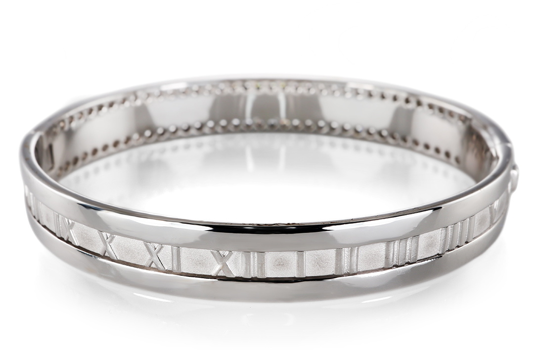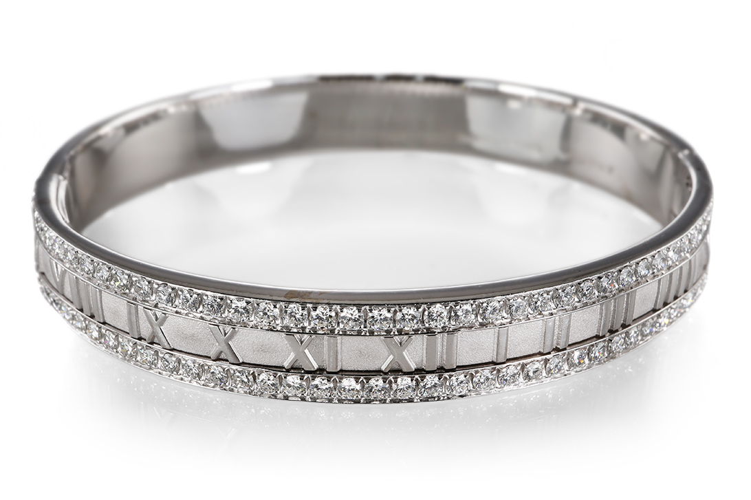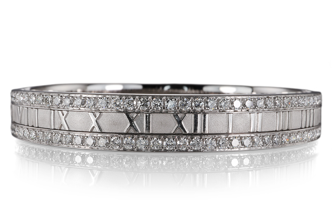 Dieses Armband besticht durch seine ikonische Gestaltung aus der renommierten Atlas-Roman-Kollektion von Tiffany & Co. Gefertigt aus edlem 750er Weißgold, vereint es klare Linien mit einer kraftvollen, zeitlosen Ästhetik. Das charakteristische Atlas-Design mit römischen Ziffern verleiht dem Schmuckstück eine markante Präsenz und steht zugleich für Eleganz und Beständigkeit.