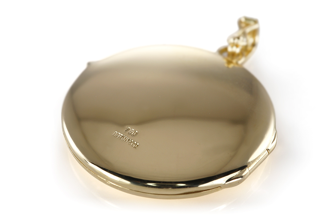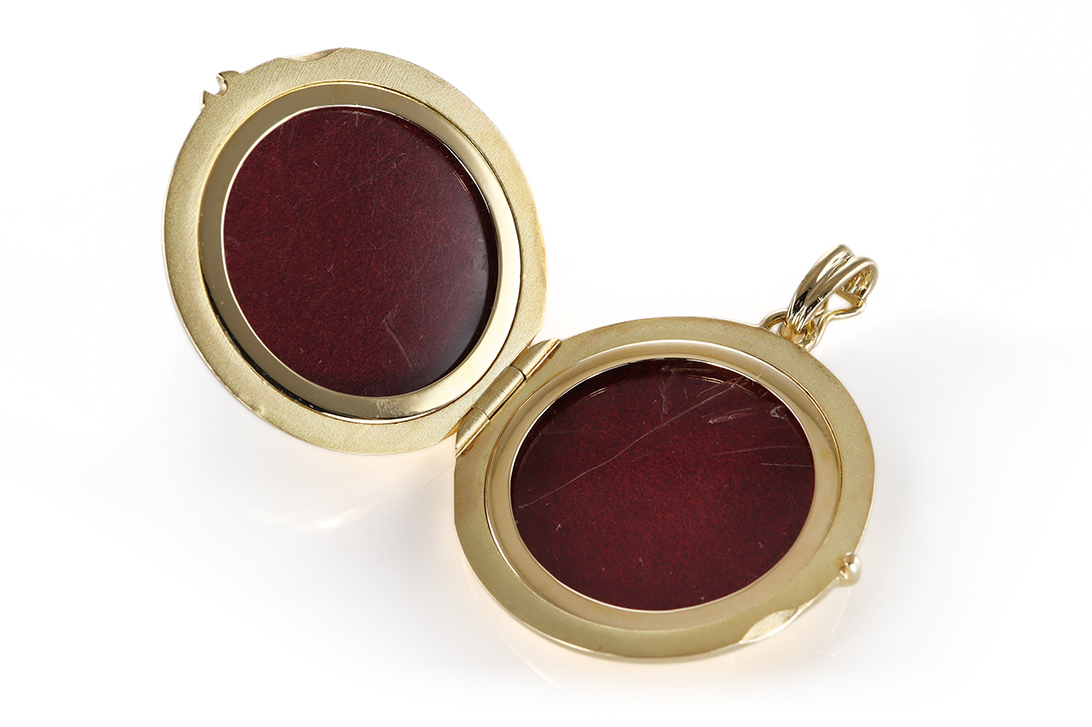 Das Medaillon lässt sich öffnen und bietet Platz für zwei persönliche Erinnerungen, etwa in Form von Fotografien oder kleinen Andenken. Dadurch verbindet dieses Schmuckstück ästhetische Wertigkeit mit emotionaler Bedeutung. Die klar gestaltete Oberfläche lenkt den Blick auf die reine Form und die hochwertige Verarbeitung, wie sie für Schmuckstücke dieses renommierten Hauses charakteristisch ist.