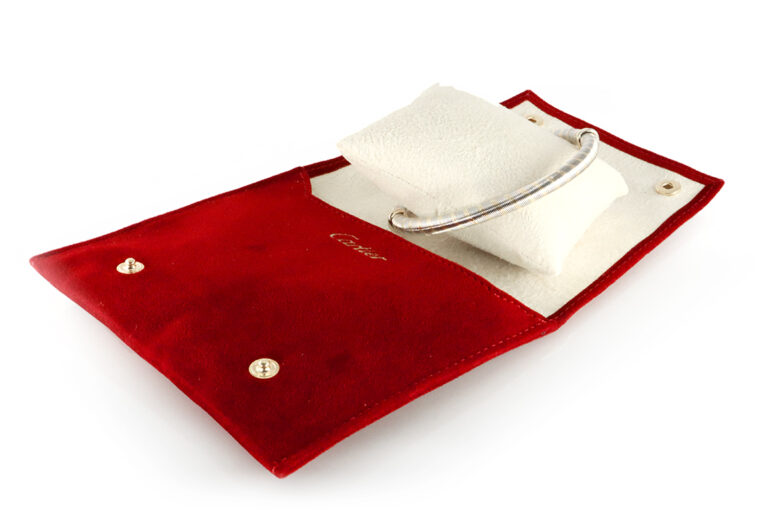 Der Armreif ist nicht öffnungsfähig und wurde zuletzt im August 2023 von Cartier überholt, was die Wertigkeit und Pflege dieses Klassikers zusätzlich unterstreicht. Geliefert wird er im originalen Reparaturbeutel von Cartier sowie mit den Überholungspapieren und einem hauseigenen Schmuckgutachten.