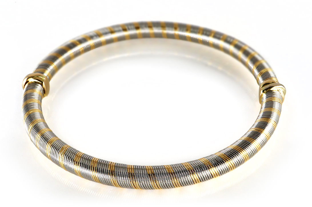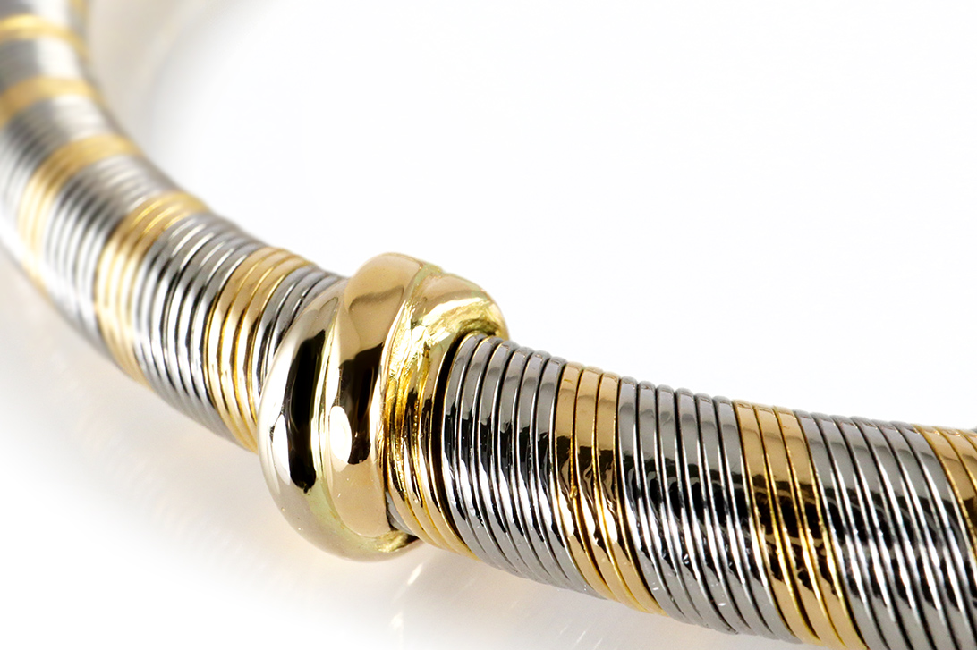Dieser edle Armreif aus der berühmten Trinity-Kollektion von Cartier vereint zeitlose Eleganz mit ikonischem Design. Gefertigt um 1980–1985, verkörpert er die charakteristische Dreifarbigkeit der Linie: 750/- Gelbgold, Weißgold und Roségold in harmonischer Verbindung mit robustem Stahl. Dieses Zusammenspiel verleiht dem Schmuckstück seine unverwechselbare Ausstrahlung und macht es zu einem echten Klassiker unter den Kreationen des Hauses Cartier.