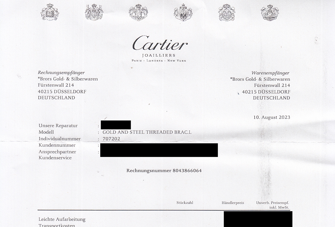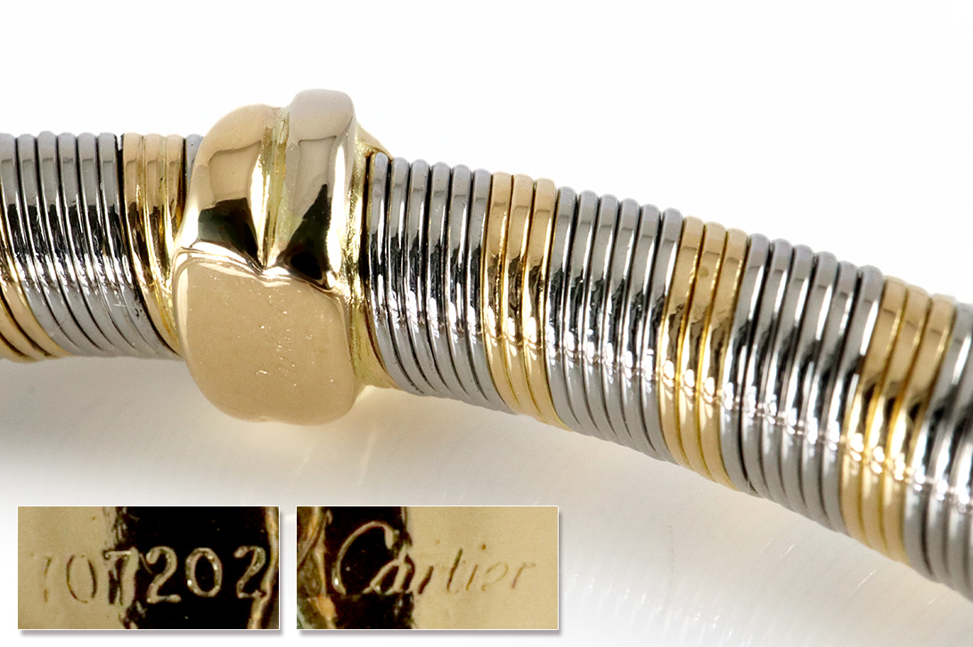Besondere Bedeutung erhält dieser Armreif durch seine Historie. Mit der eingravierten Individualnummer „707202“ trägt er die Authentizität und den Wiedererkennungswert eines originalen Cartier-Schmuckstücks. Im August 2023 wurde er von Cartier selbst überholt, wodurch er in einem exzellenten Zustand erstrahlt.